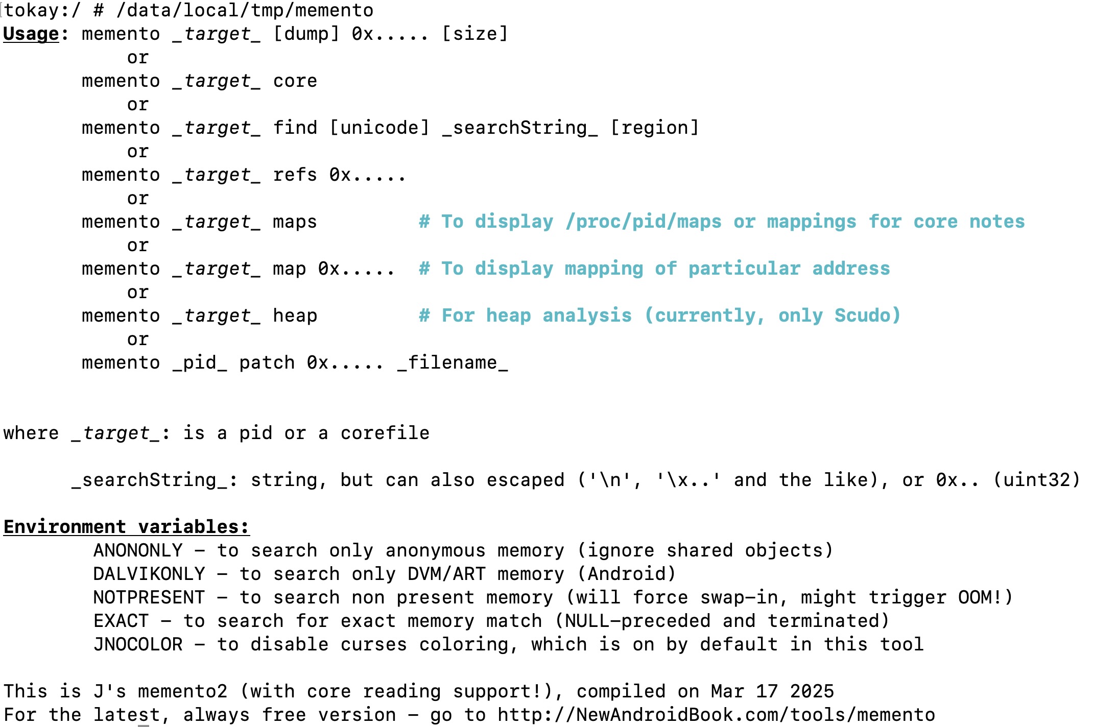 Memento - a simple rapidly evolving, highly useful memory inspection tool